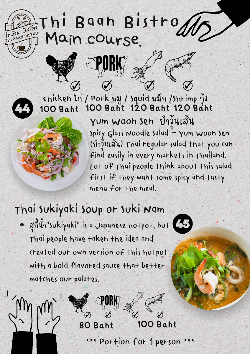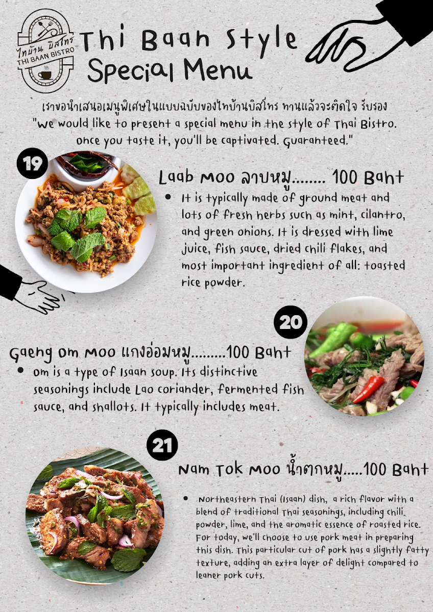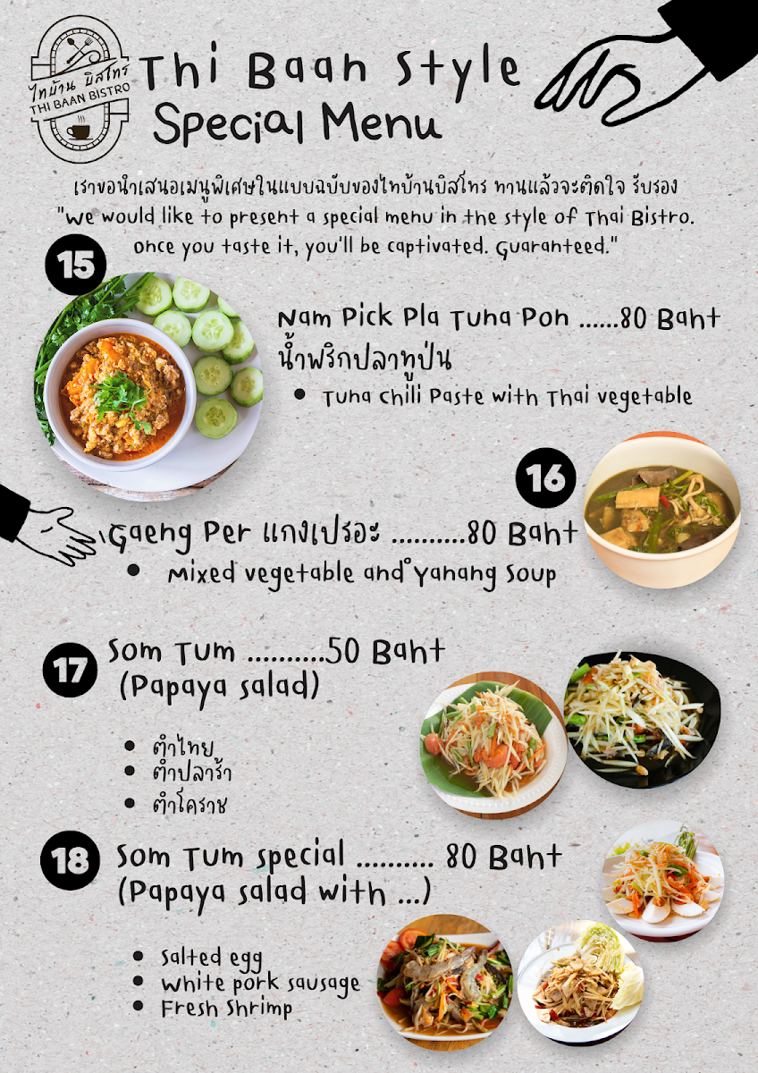 Thi Baan Bistro Menu
